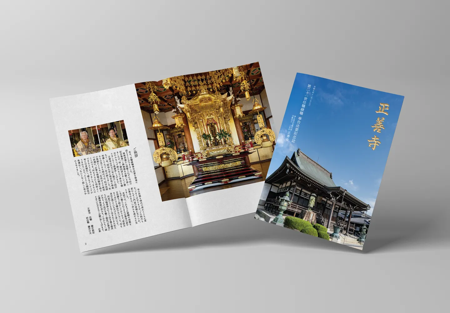 広島県福山市で、正善寺様の記念誌制作において、撮影から編集・デザインまでを一貫して担当させていただきました。本堂や仏具の撮影では、建築の造形美や細部に込められた職人の手仕事を丁寧に捉え、寺院の荘厳な空気感を誌面に反映しました。16ページに渡って寺院の歩みと信仰の継承を写真と文章で描き出し、格式と温かみを兼ね備えた一冊として仕上げました。