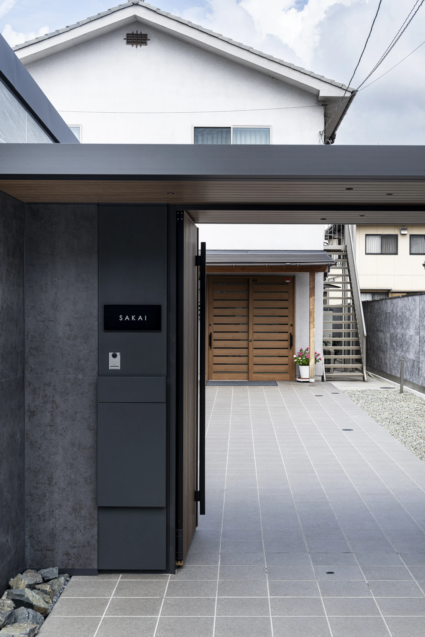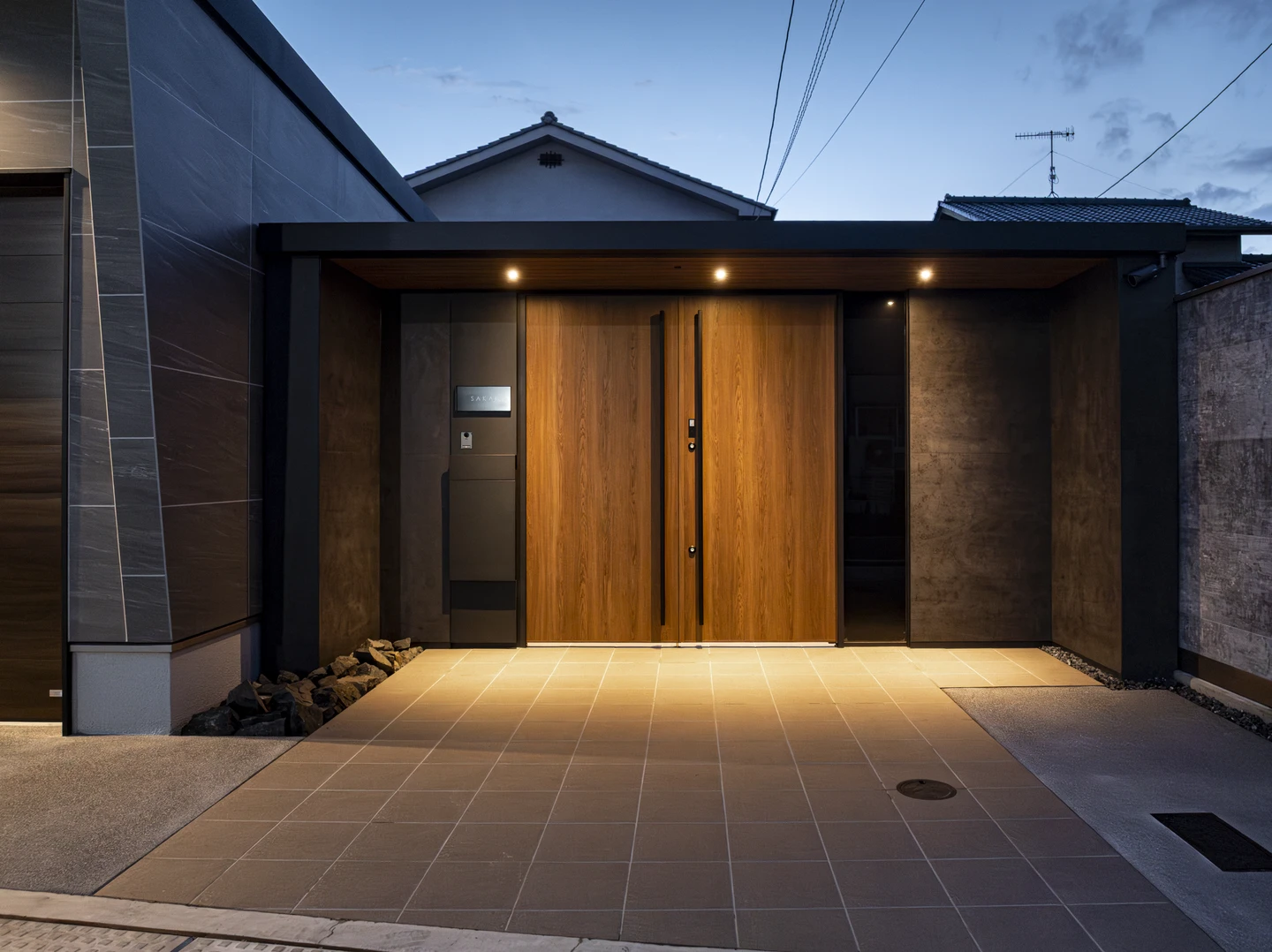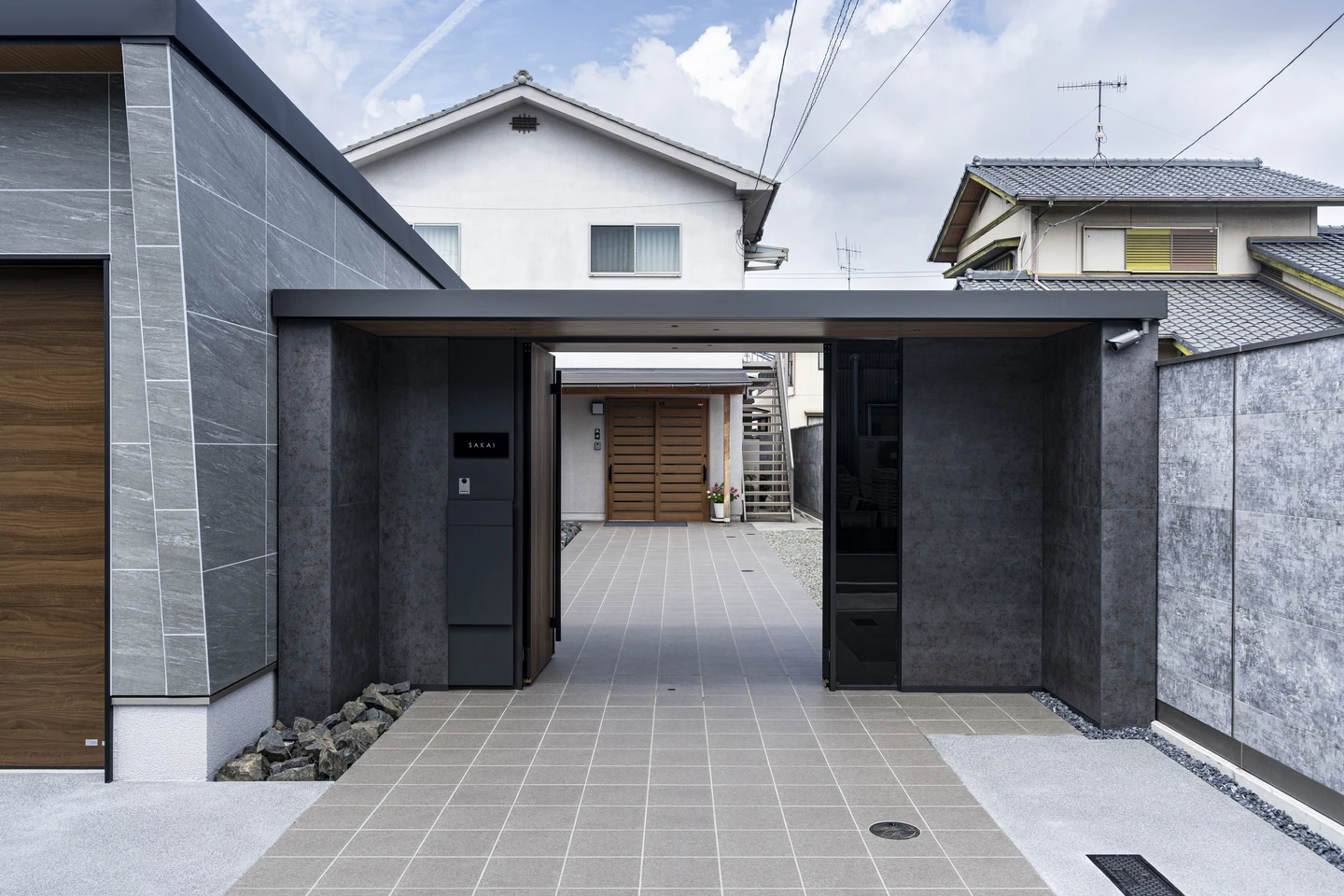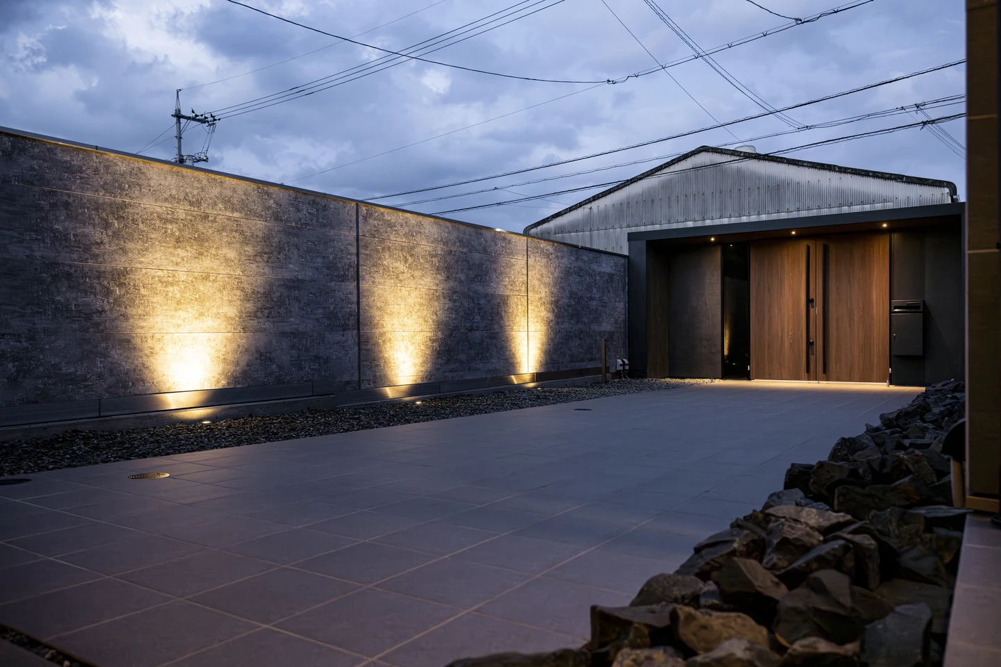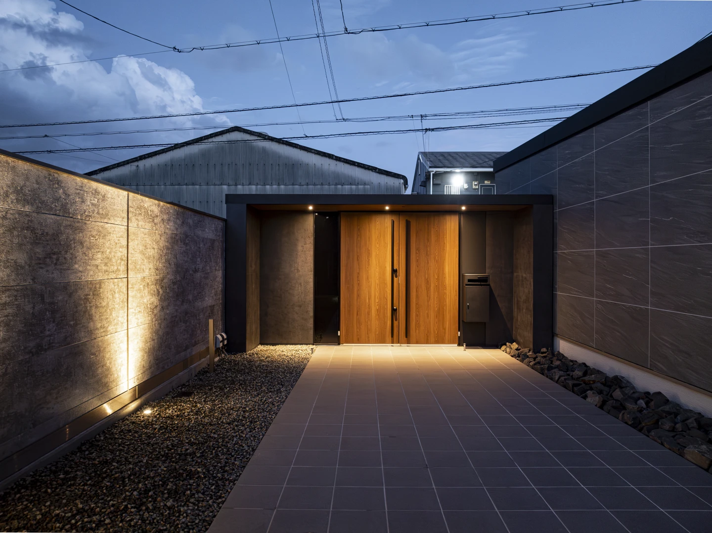 株式会社竜建設様が手掛ける外構およびアプローチ空間の撮影をさせていただきました。奥行きのある空間構成が感じられるよう、視点の位置と構図を調整しながら撮影しています。アプローチの起点となる門扉には、日本で初めて導入されたLIXIL製の製品が採用されており、空間の印象を決定づける要素として、存在感と素材の質感を捉えました。また、時間帯による光の変化にも着目し、日中の均質な広がりと、夕景における光によって際立つ立体感の違いを対比的に表現しています。空間構成と光の変化、その両面から魅力を引き出すよう撮影しました。