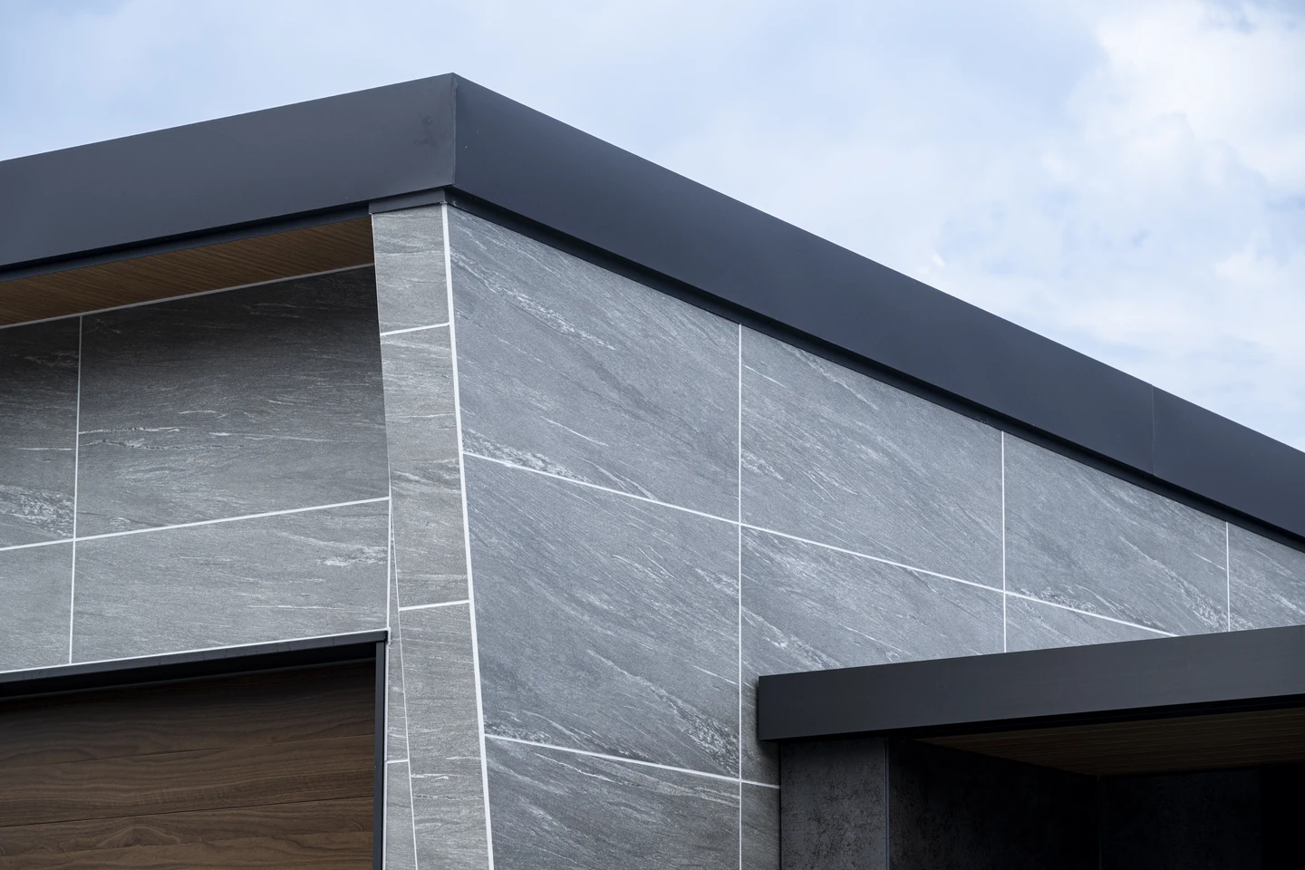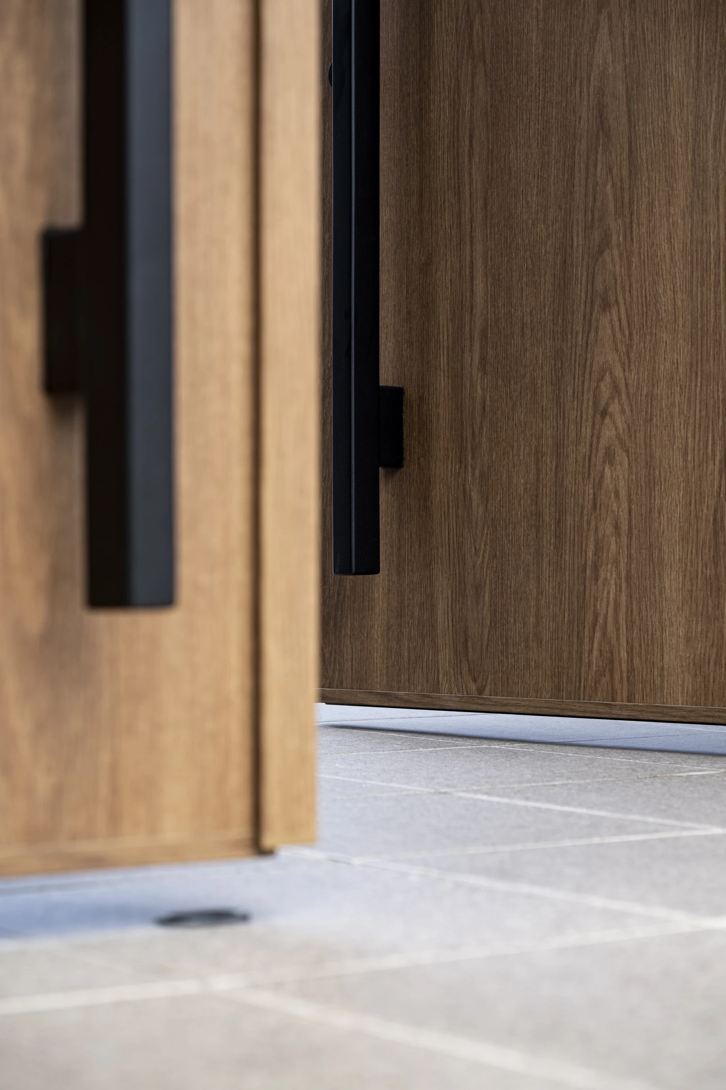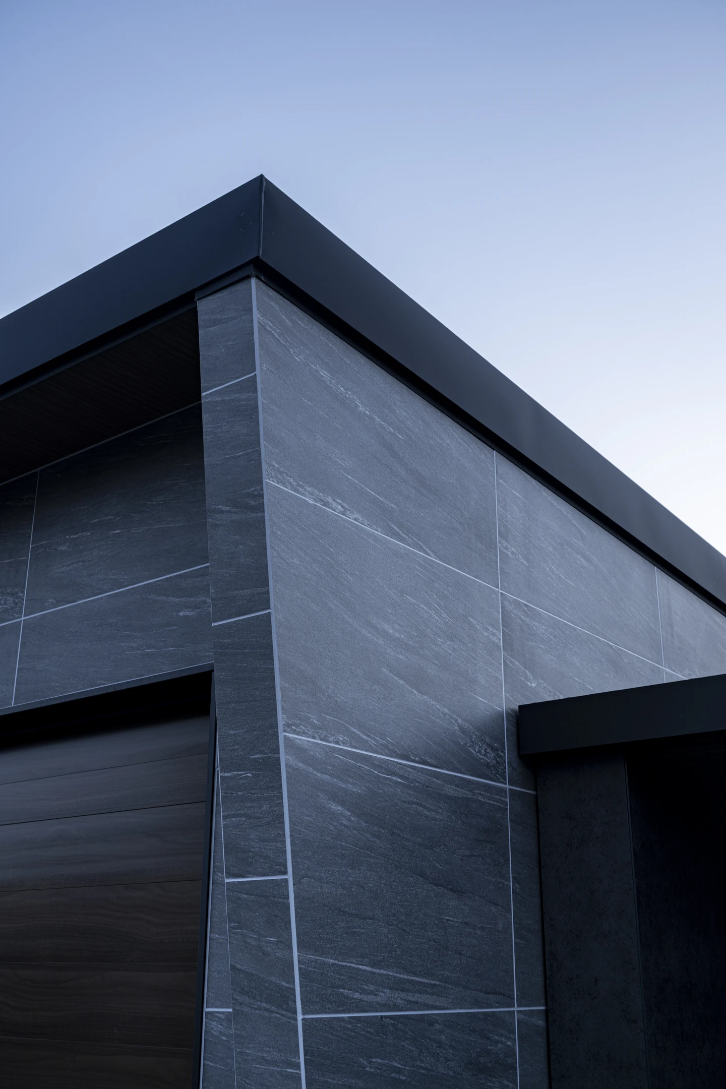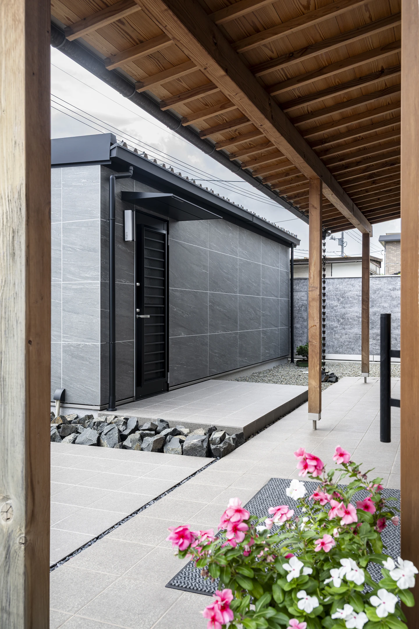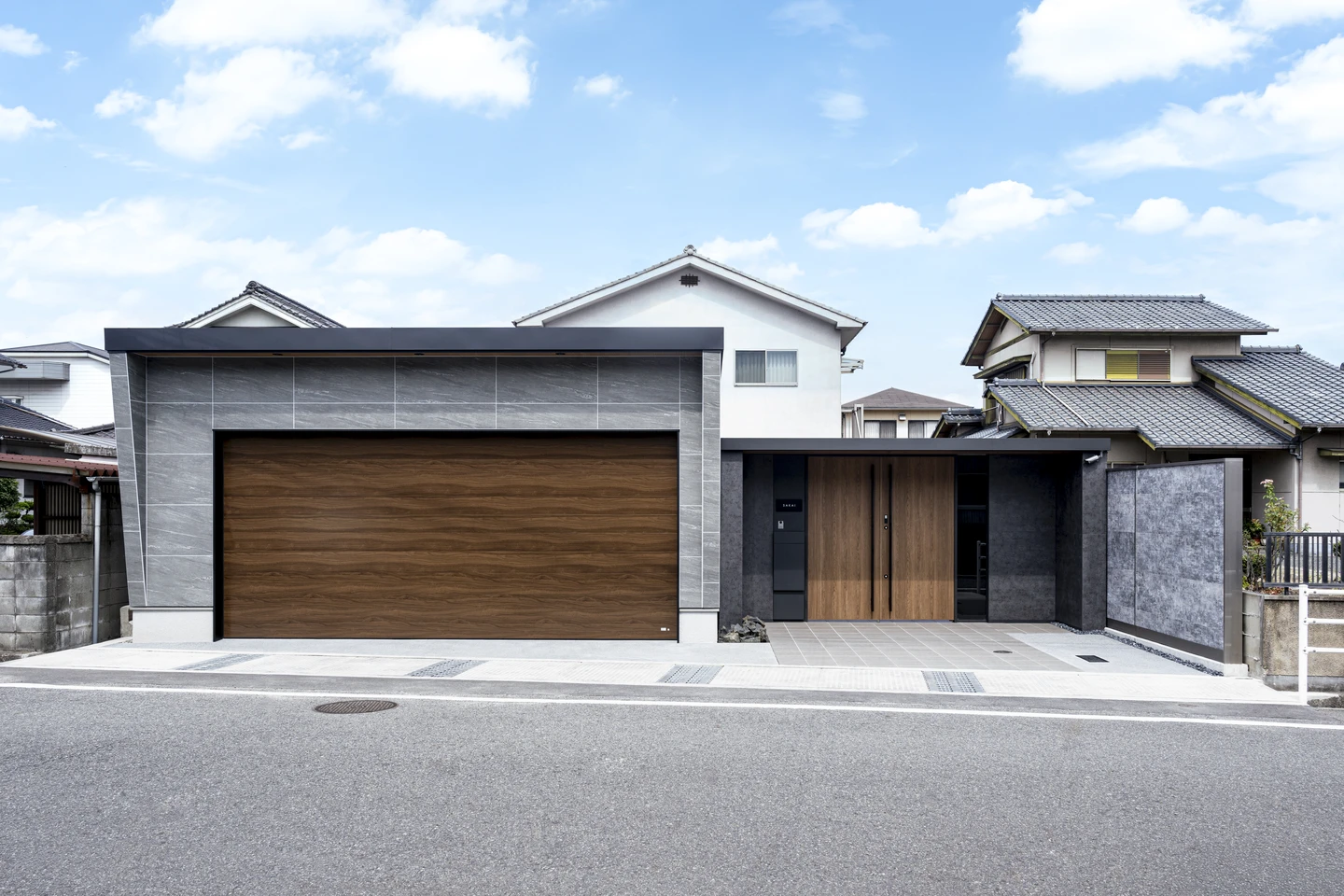 株式会社竜建設様が手掛ける外構およびアプローチ空間の撮影をさせていただきました。奥行きのある空間構成が感じられるよう、視点の位置と構図を調整しながら撮影しています。アプローチの起点となる門扉には、日本で初めて導入されたLIXIL製の製品が採用されており、空間の印象を決定づける要素として、存在感と素材の質感を捉えました。また、時間帯による光の変化にも着目し、日中の均質な広がりと、夕景における光によって際立つ立体感の違いを対比的に表現しています。空間構成と光の変化、その両面から魅力を引き出すよう撮影しました。