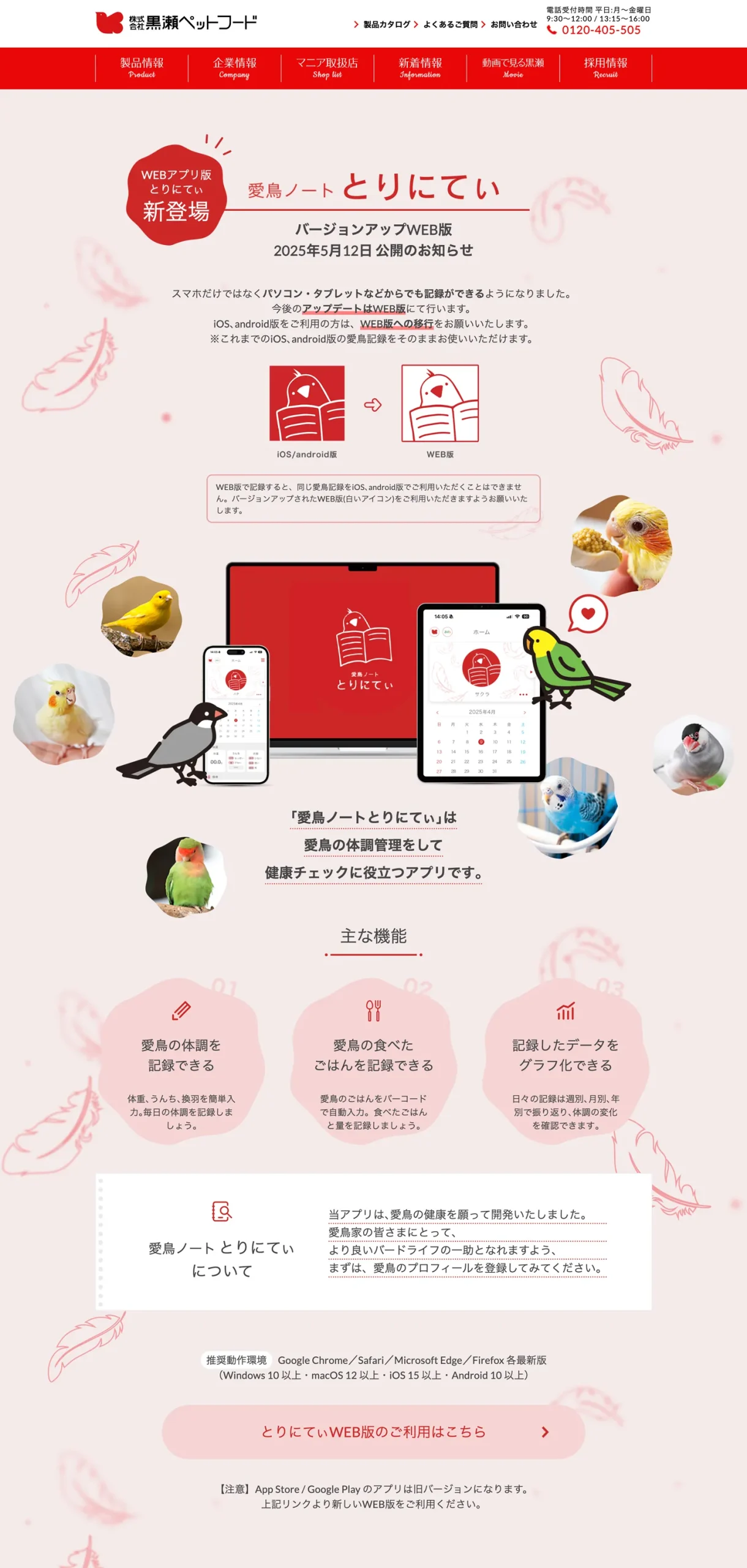 株式会社黒瀬ペットフード / 愛鳥飼育管理アプリケーション開発
